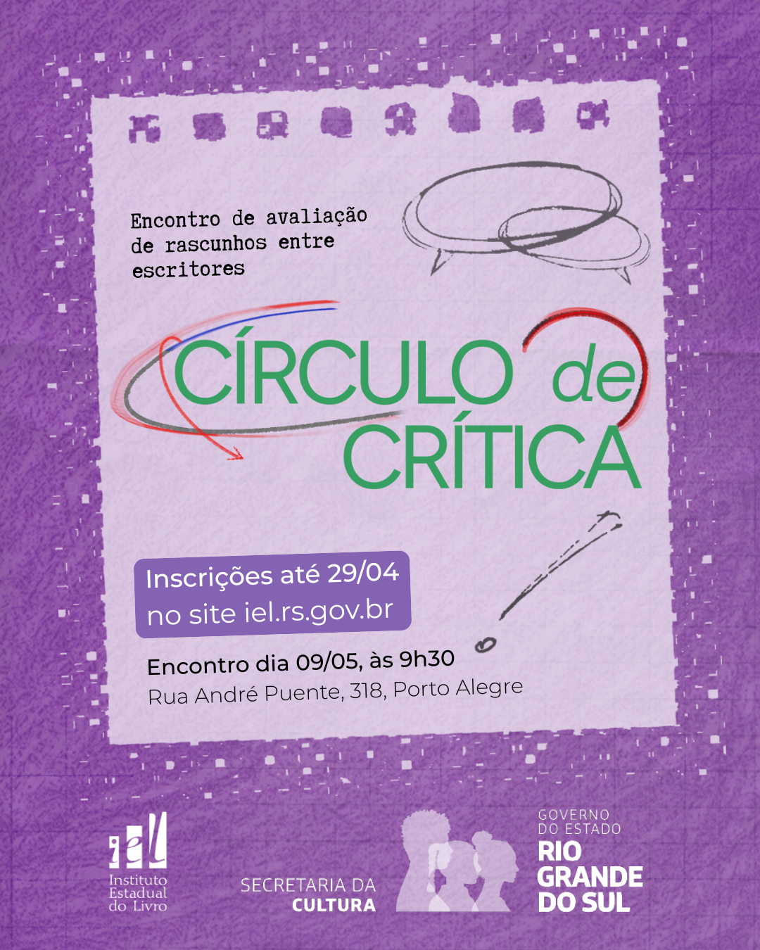 O próximo encontro acontece em 9 de maio (sábado), das 9h30 às 12h, na sede do IEL (Rua André Puente, 318, bairro Independência, Porto Alegre).