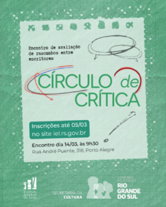 O Círculo de Crítica consiste na promoção de encontros periódicos para que autores conversem sobre seus rascunhos e projetos literários em desenvolvimento, buscando aperfeiçoamento mútuo e feedback dos pares e possibilitando a formação de um grupo de crítica construtivo e respeitoso entre escritores. Coordenada pela equipe do IEL, a atividade vem sendo realizada desde março de 2025. Para participar, os interessados devem preencher o formulário eletrônico disponível no website do instituto e anexar um rascunho de até três páginas de um texto literário de sua autoria. Após o término do período de inscrições, o material é disponibilizado para a leitura dos participantes, que podem discutir seus textos e trocar sugestões e considerações durante cada evento.